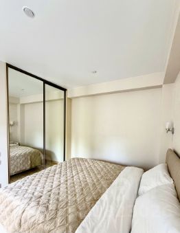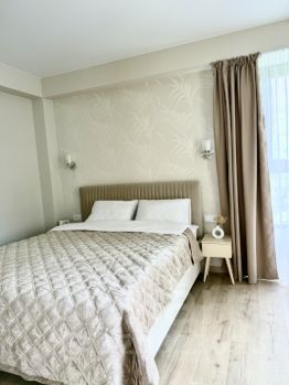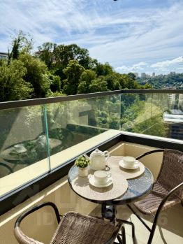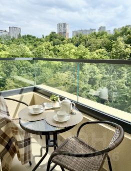 Окна квартиры выходят в парк, поэтому можно любоваться зелёным видом и слушать пение птиц. В квартире имеются два балкона (в спальне и на кухне) с потрясающим видом в парк. На балконе имеются столик и стулья, что располагает к приятному чаепитию поутру.