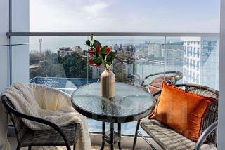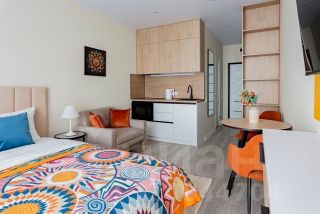 —Просторная светлая студия с уютным балконом, идеальным для утреннего кофе или вечернего отдыха.