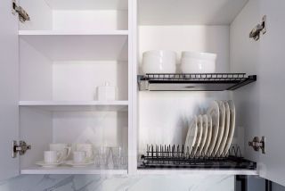—Полностью оборудованная кухня с посудой, утюгом, гладильной доской и феном.