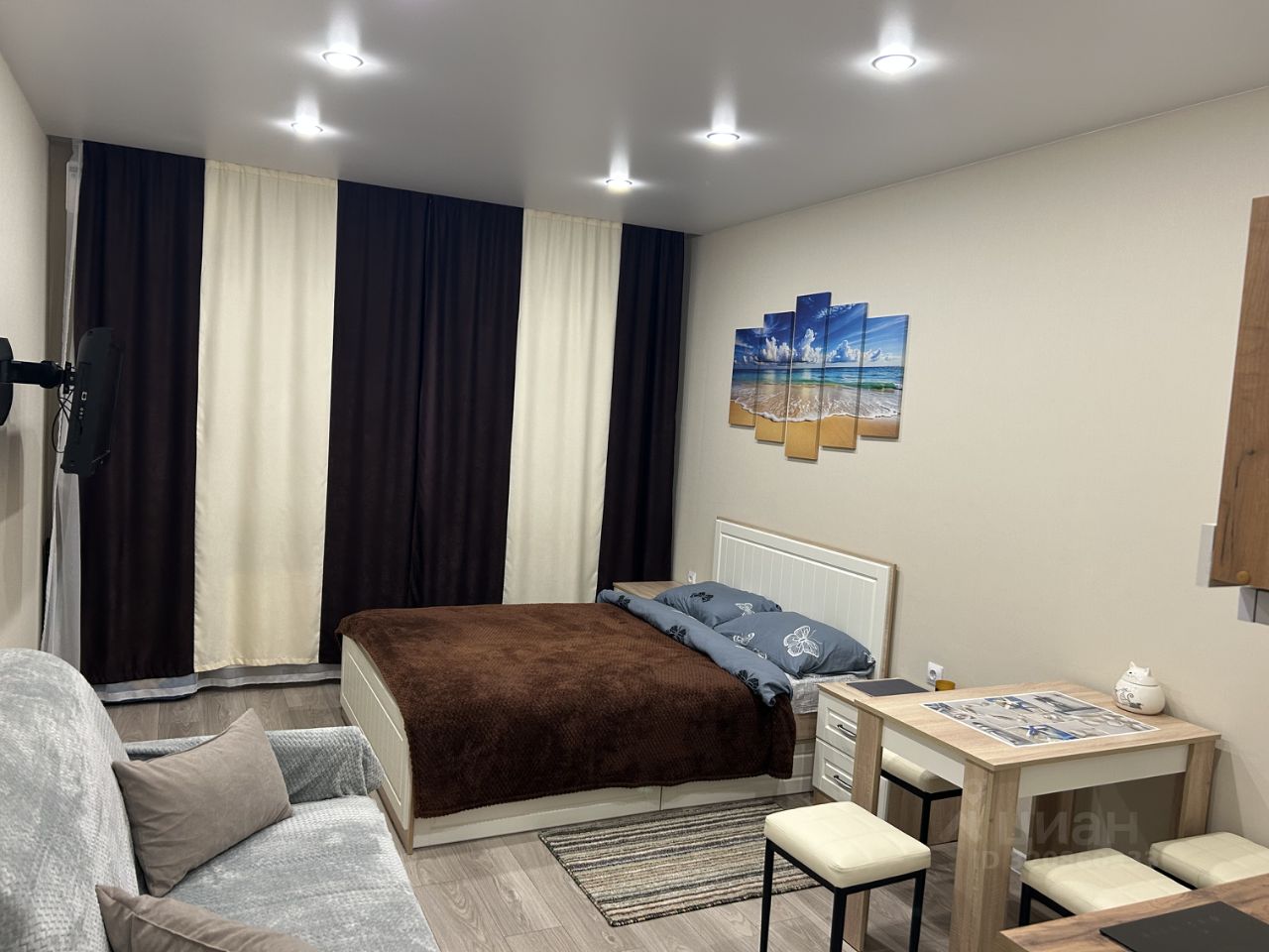 Студия с евроремонтом и балконом, оборудована всем необходимым для комфортного проживания. Уютная обстановка: мебель в комнате и на кухне, современная техника — кондиционер, холодильник, телевизор и стиральная машина. Продуманная планировка позволяет эффективно использовать каждый квадратный метр.