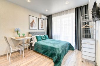 Современная квартира-студия в закрытом комплексе с охраной и видеонаблюдением. Всего пару минут пешком до лучшего пляжа Дагомыса и ж/д станции! Идеальный вариант для романтического отдыха или командировки.