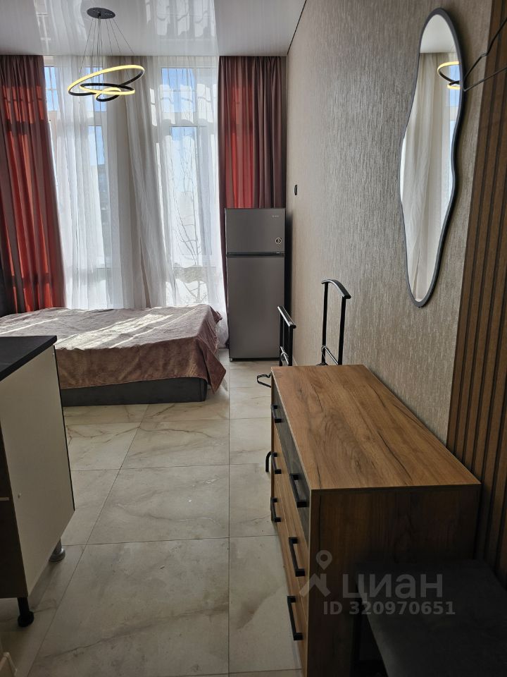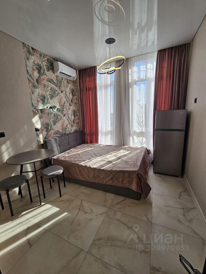 Квартира - Студия ,новый хороший ремонт, первая сдача . Большая 2х спальная кровать, с подъёмным механизмом, что даёт место для хранения. Кухонный гарнитур, плита, холодильник, Эл. чайник. Стиральная машина, Кондиционер. Все новое !