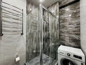Ванная комната оснащена всем необходимым, включая душевую кабину, полотенцесушитель, раковину и зеркало
