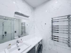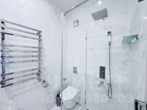 Ванная комната оснащена всем необходимым, включая душевую кабину, полотенцесушитель, раковину и зеркало