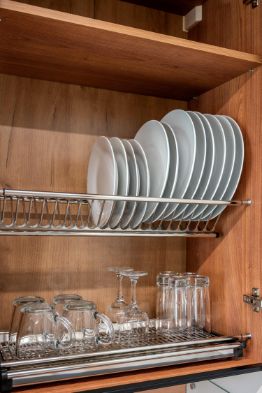 — зона кухни оснащена встроенным холодильником, микроволновой печью, варочной поверхностью на 3 конфорки, кофемашиной, посудомоечной машиной;