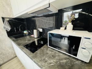 В квартире есть вся необходимая мебель, бытовая техника: чайник, индукционная плита, холодильник, микроволновая печь, робот пылесос, набор посуды, столовые приборы, смарт тв, стиральная машина, утюг, фен и сушка для белья. Кондиционер, тёплый пол, Wi-Fi.