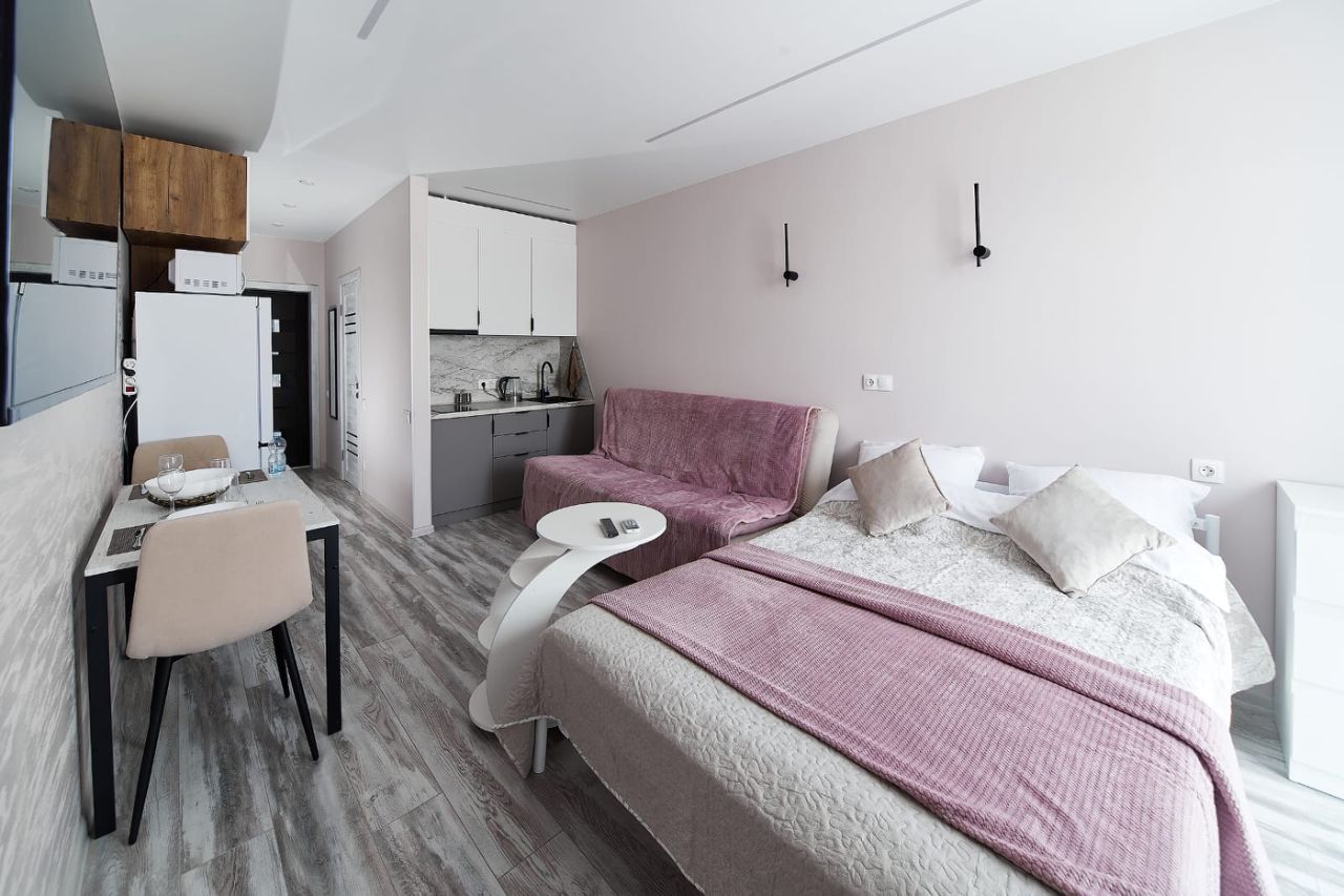 Сдается уютная студия в современном жилом комплексе в Сочи, микрорайон Бытха, на Ясногорской улице. Квартира находится на 6 этаже нового 20-этажного дома, построенного в 2022 году. Общая площадь студии составляет 24 кв. м, высота потолков — 3 метра. Идеально подойдет для комфортного проживания одного человека или пары.