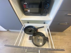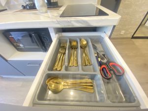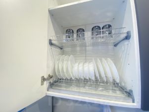 В квартире есть вся необходимая мебель, бытовая техника: чайник, индукционная плита, холодильник, микроволновая печь, набор посуды, столовые приборы, телевизор, стиральная машина, утюг, фен, гладильная доска и сушка для белья. Кондиционер, Wi-Fi, тёплый пол.