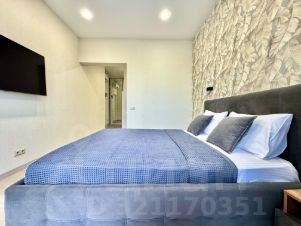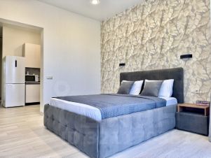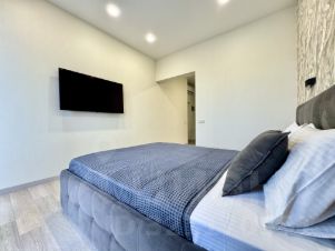 Вместимость апартамента до 3 гостей: комфортная кровать queen-size (160200) + кресло-кровать для детей.