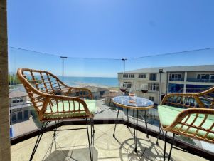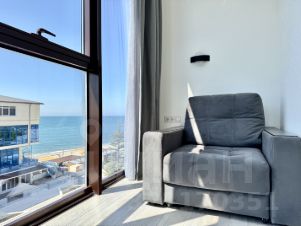 Просторная студия с зоной отдыха и балконом, где можно наслаждаться свежим морским воздухом.