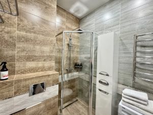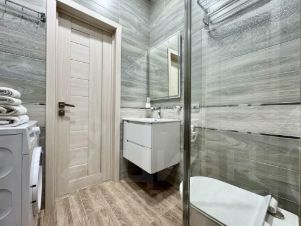 Уют и комфорт: теплые полы, мощный кондиционер, стиральная машина с капсулами, утюг, фен и даже махровые халаты.