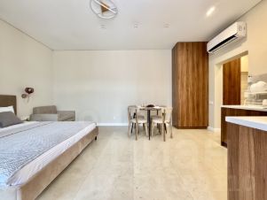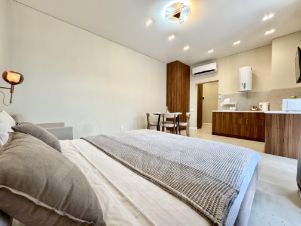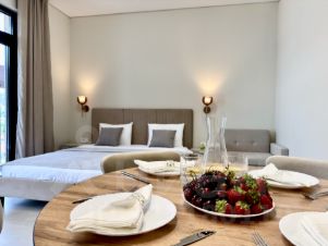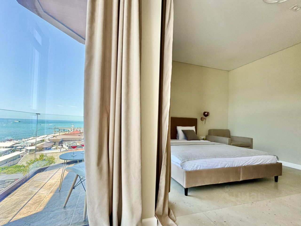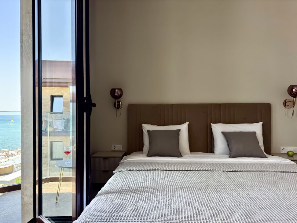 • Просторная студия с зоной отдыха и балконом, где можно наслаждаться свежим морским воздухом.