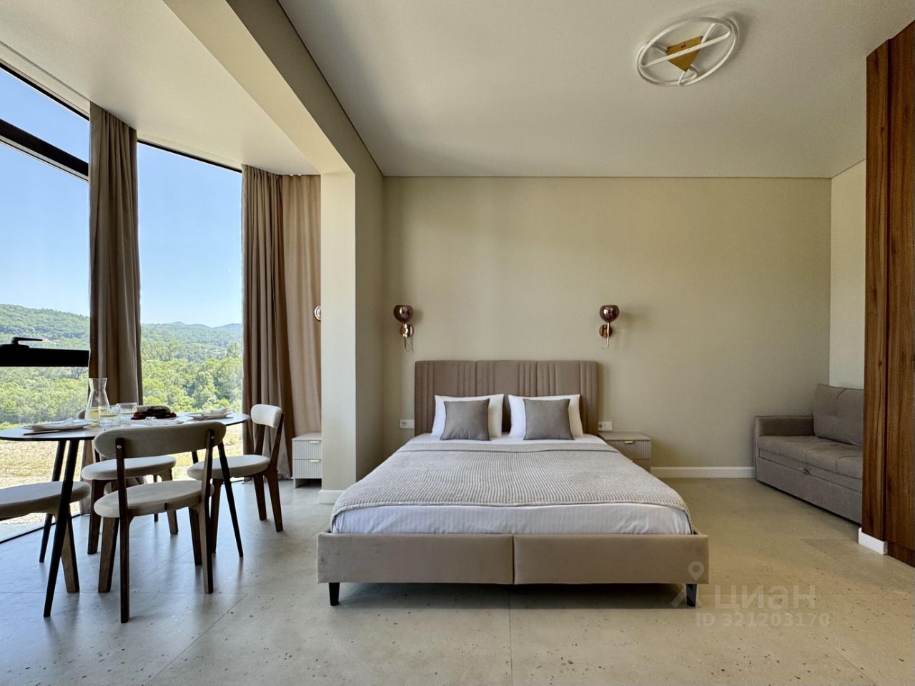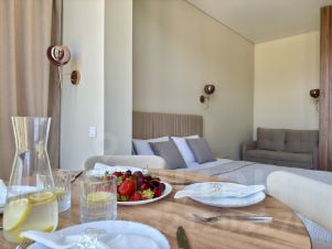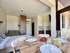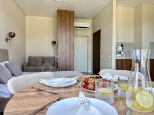 • Просторная студия с зоной отдыха и балконом, где можно наслаждаться свежим морским воздухом.