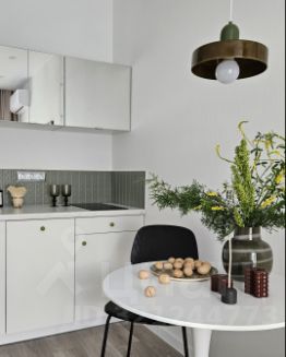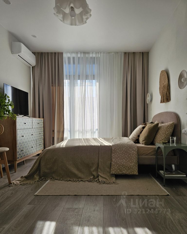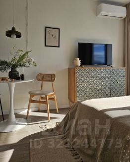 В квартире выполнен дизайнерский ремонт, который создает атмосферу комфорта и уюта. Студия полностью меблирована, здесь есть все необходимое для комфортного проживания: удобная мебель в комнате и на кухне. Встроенная техника включает кондиционер, холодильник, посудомоечную машину, телевизор и стиральную машину. В совмещенном санузле установлена душевая кабина. Также в квартире есть балкон для отдыха или работы на свежем воздухе.