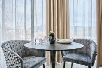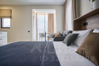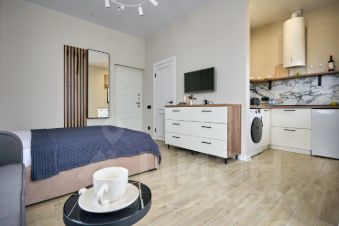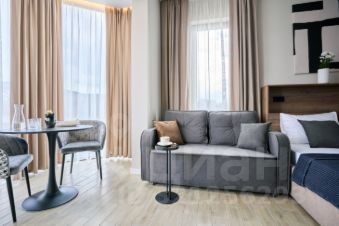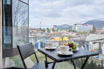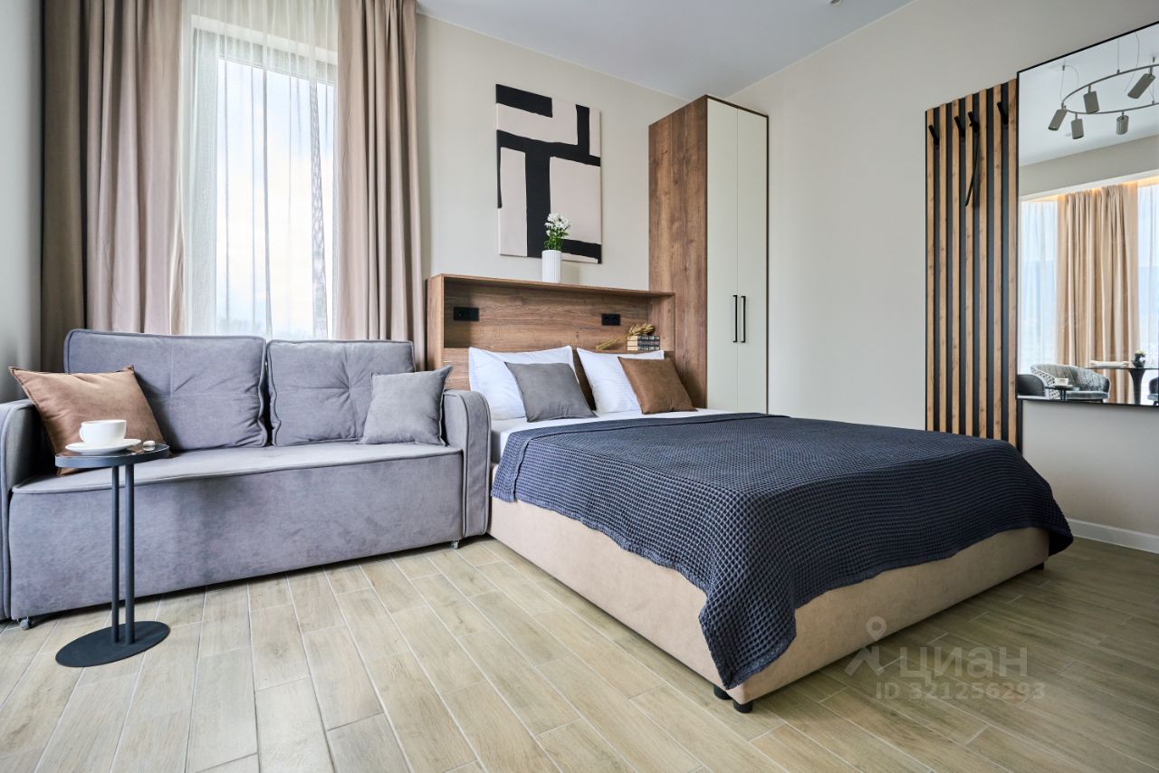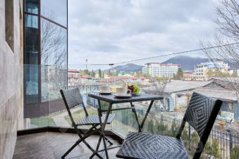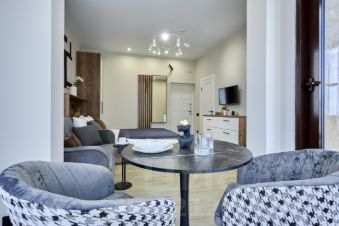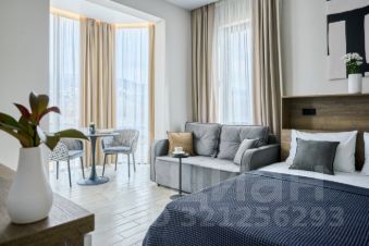 Просторная студия с зоной отдыха и балконом, где можно наслаждаться свежим морским воздухом.