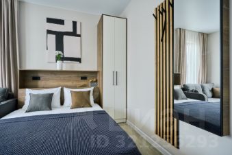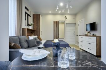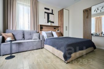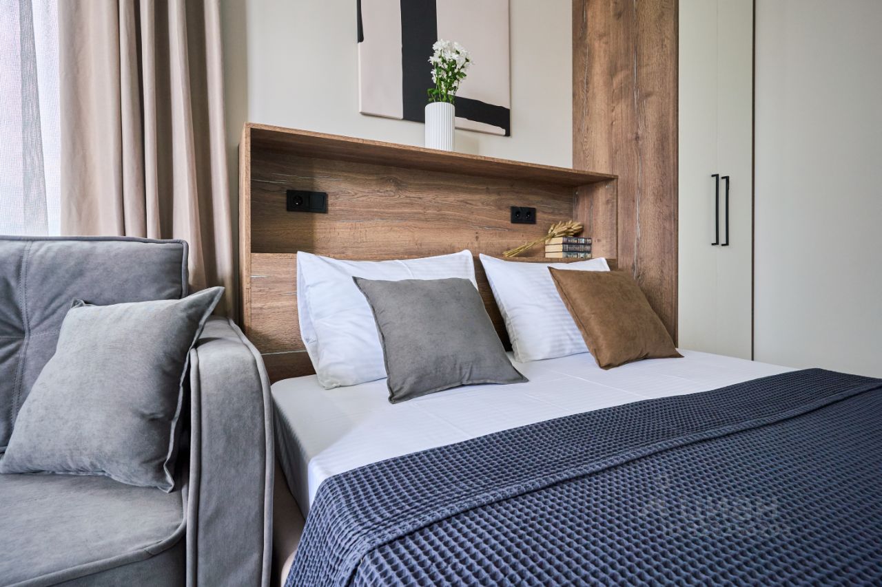Вместимость апартамента до 3 гостей: комфортная кровать queen-size (160200) + диван-кровать для ребенка (145200).