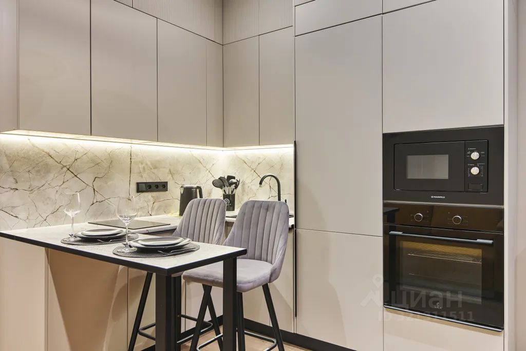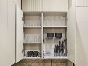 Кухонная зона — свч, холодильник, чайник, плита,