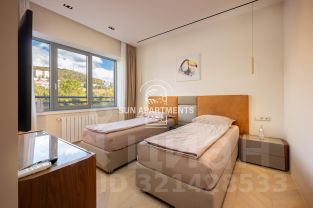 Преимущества апартаментов перед гостиницей и отелем — большая площадь квартиры. Гости могут пользоваться всей инфраструктурой комплекса: бассейн, терраса, детская площадка, лаунж-зона.