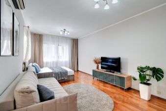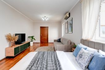 ЖК ТВ в спальне/гостиной, ЖК ТВ в гостиной, ТВ с DVD и дисками на балконе,кондиционер в спальне и кухне;
