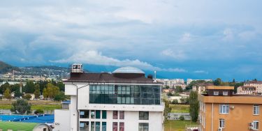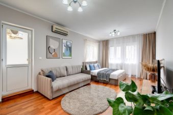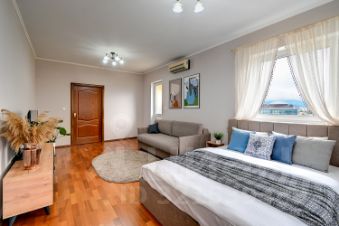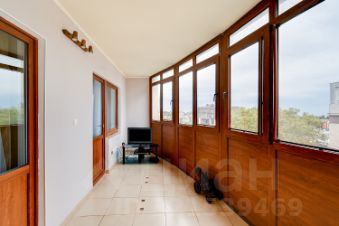В квартире два балкона: один небольшой с видом на море и город, второй жилой оборудованный диваном и телевизором.