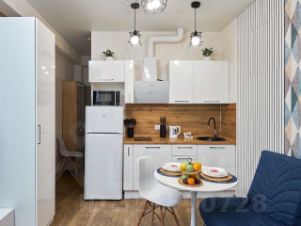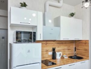 В квартире есть вся необходимая мебель и техника: кондиционер, холодильник, телевизор и стиральная машина. Кухня оборудована современной мебелью, а в комнате есть всё для комфортного проживания. Планировка студии продумана до мелочей, чтобы каждый квадратный метр приносил пользу. Санузел совмещенный, оборудован душевой кабиной. Также имеется собственная терраса для приятных вечеров на свежем воздухе.