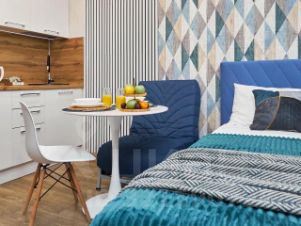 Сдаётся уютная студия с дизайнерским ремонтом в жилом комплексе на Старошоссейной улице, 5к2, в посёлке Дагомыс, городской округ Сочи. Общая площадь квартиры — 30 кв. м, из которых 20 кв. м занимают жилая зона. Квартира расположена на первом этаже 13-ти этажного блочного дома, построенного в 2019 году. Высота потолков составляет 3 метра, а окна выходят во двор, что обеспечивает тишину и спокойствие.