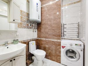 Квартира укомплектована всей необходимой бытовой техникой, включая стиральную машину, холодильник, плиту, духовой шкаф и посудомоечную машину. В каждой комнате установлены кондиционеры, что позволяет поддерживать комфортную температуру в любое время года.