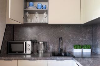 — Чайник, микроволновая печь, варочная панель, вытяжка, мини-холодильник