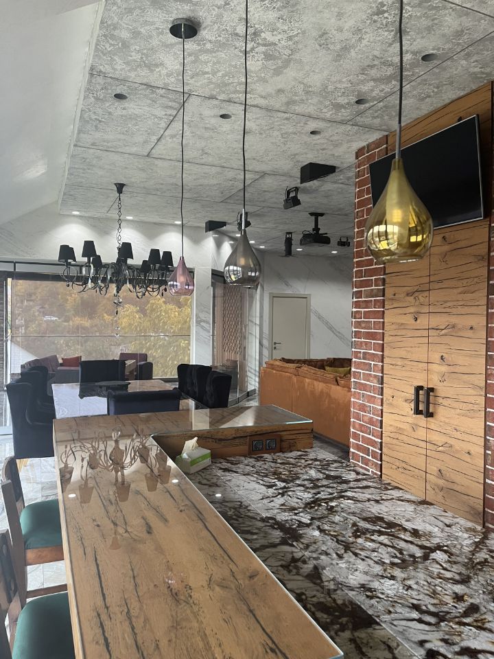 Сдаётся просторная и светлая квартира в Сочи на Амбулаторном переулке, 5/2. Это апартаменты с общей площадью 270 кв. м, расположенные на пятом этаже пятиэтажного дома. Высокие потолки в 3 метра добавляют пространства и воздуха. В квартире 2 полноценных этажа жилая площадь составляет 200 кв. м, первый этаж: кухня/столовая/гостиная, с домашним кинотеатром; просторная терраса с видом на горы; спа-зона ( баня, купель, джакузи) и гостевая комната; 2 этаж: три спальни, гардеробная, постирочная с балконом, ванная комната