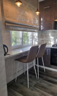 Уютная двухкомнатная квартира в центре города. Бльшая спальня с кроватью king size, гардеробной и зоной для работы за компьютером, в каждой комнате шторы блэк аут. Для жизни все есть, постельное,подушки,одеяла,вся посуда. Возможна уборка горничной за доп.плату.