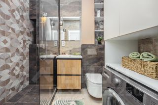 Санузел оборудован душевой с дорогой и качественной сантехникой, стиральной машиной и феном.