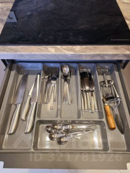 Духовой шкаф, микроволновая печь, столовые приборы, кастрюли, сковороды и средства для уборки, утюг и гладильная доска. Стиральная и посудомоечная машина, капсулы.