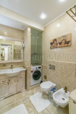 Просторная квартира с видом на море! Угловая планировка (много окон) с витражным остеклением! Очень светлая и просторная, стильный современный ремонт. Квартира имеет 1 спальню,  балкон, 2 санузла. На кухне есть посудомоечная машина, вся посуда! Квартира оборудована всем необходимым!