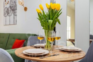 Полноценная Кухня - оборудована всем необходимым: качественной бытовой техникой, столовыми приборами и посудой, имеется микроволновая печь, варочная панель, вместительный двухкамерный холодильник, духовой шкаф, обеденная зона.