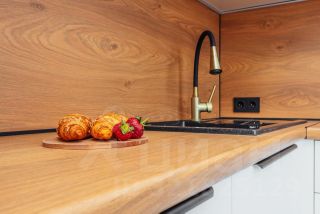 Кухня оснащена всем необходимым: варочная панель, холодильник, эл.чайник, микроволновая печь, духовой шкаф, посуда и кухонная утварь, стиральная машина. Выход на балкон, где можно посидеть с чашечкой кофе, любуясь прекрасными возвышающимися горами.