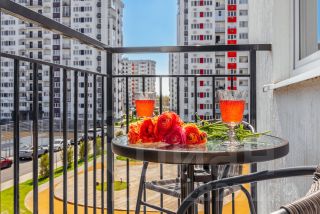 От аэропорта до жилого комплекса ехать 15 минут. Рядом с домом есть магазины - Пятерочка, Магнит, в шаговой доступности Казачий рынок. Также продукты можно заказать в магазине ВкусВилл , Сбермаркет, Деливери, Самокат.