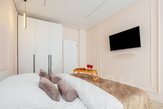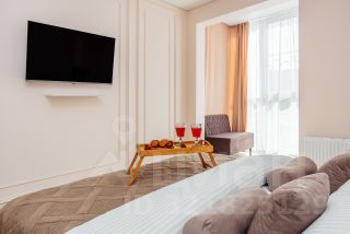 В спальной зоне расположена удобная и комфортная кровать с ортопедическим матрасом, Smart TV, большой вместительный шкаф и лоджия с рабочим столом и маленьким диванчиком для релакса)