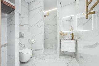 Совмещённый санузел с большой душевой кабиной, стиральной машиной, феном.