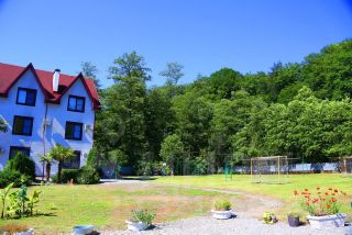 На участке: настольный теннис, баскетбольная площадка, беседка, мангал, гамак, шезлонг, футбольное, волейбольное и бадминтоное поле, воркаут и детская площадки, горная речка с удобным спуском в 15 метрах!