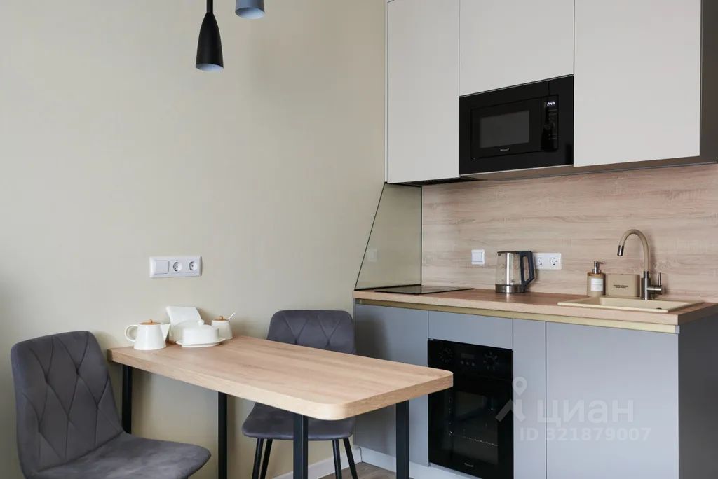Кухонная зона — свч, холодильник, чайник, плита,