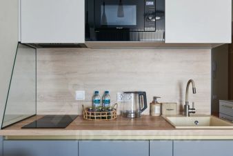 Студия с дизайнерским ремонтом рассчитана на 2 гостей.
