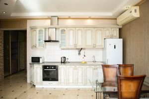 В квартире имеется двуспальная кровать и двуспальный диван. Квартира может принять 4-5 человек ( есть дополнительное место )