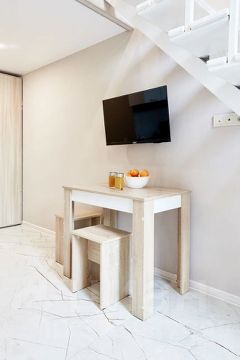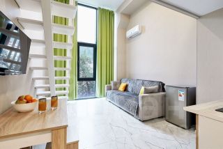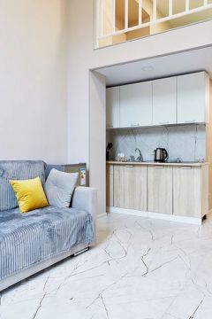 На первом этаже расположена кухня — гостиная с зоной отдыха.