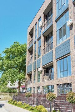 Видеонаблюдением, имеются парковочные места, во дворе детская площадка, красивое озеленение.