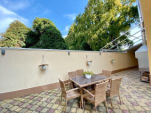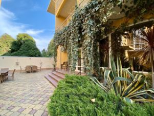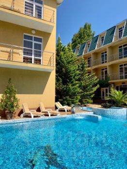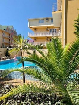 Территория комплекса закрытая, подогреваемый новый всесезонный большой бассейн 15*10 метров и детский бассейн, зимой тоже работает. На территории есть зона отдыха со столами, красивые ухоженные пальмы, подсветка в темное время суток, райский уголок.