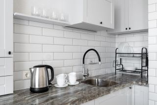 — Холодильник, духовой шкаф, посудомоечная машина, варочная панель, чайник, вытяжка.