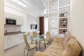 Буду рад принять Вас в апатаментах студио комплекса бизнес-класса ЖК Актёр Гелакси, у нас есть бассейн, кафе, рестораны, спорт площадка, выход на платный и бесплатный пляж, рядом есть санаторий с лечением, есть спа за отдельную плату с бассейном 50м дорожки, тропа здоровья протяжённостью 10 км. Мы находимся недалеко от центра Сочи на главной улице города, рядом жд станция с которой уходят скоростные ласточки в олимпийский парк и красная Поляна. Мы гордимся своей инфраструктурой, которую по праву считаем лучшей. Студия подходит для пары с детьми, либо для пары. До бесплатного пляжа Заря 250 метров, до платного пляжа санатория Актре 200 метров. В цену входит 2 уборки от нашей горничной.
