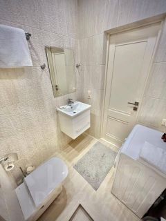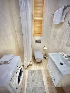 Просторный санузел - с душем, стиральной машиной, феном. Гостям будут предоставлены набор полотенец и постельное белье.