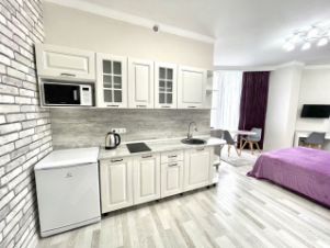 Стильная и просторная студия, шикарное место расположения в шаговой доступности от моря, рядом вся инфраструктура! Своя закрытая территория ,бассейн, мангальная зона! Прогулочная до моря без машин! К/П оплачиваются отдельно!