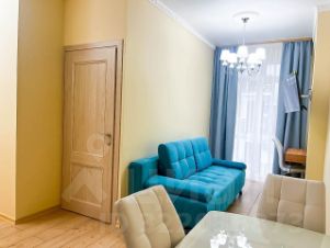 Квартира однокомнатная 36,1 кв. метров, рассчитана на 3-х гостей. Расположена на третьем этаже. В квартире бесплатный Wi-Fi, кондиционер. В коридоре оборудован встроенный шкаф для хранения вещей. Ванная комната совместна с санузлом, оснащена стиральной машинкой, феном. Далее коридор и обеденная зона с оборудованной необходимой бытовой техникой и посудой кухня. На кухне ТВ 43 диагональ. В спальне двуспальная кровать, ЖК ТВ 47 с Q-LED матрицей, выход на балкон. На балконе стол и два кресла для вечерних посиделок. В зоне отдыха расположен диван раскладывающийся и оборудовано рабочее место.